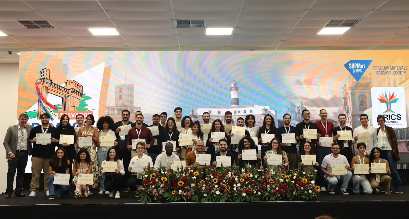 Estudantes premiados durante encontro da SBPMat em Salvador (BA). Foto: B-MRS Meeting