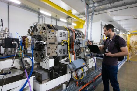“Este é o primeiro ondulador do tipo delta a ser instalado em um anel de armazenamento de uma fonte de luz síncrotron e ele foi todo construído aqui no CNPEM. Ele é composto por 4 fileiras de blocos magnéticos, que podem ser movimentados para ajustar as propriedades da luz síncrotron gerada, tanto em termos de polarização quanto de energia.” complementa Vitor Soares, físico do Grupo de Sistemas Magnéticos do CNPEM.